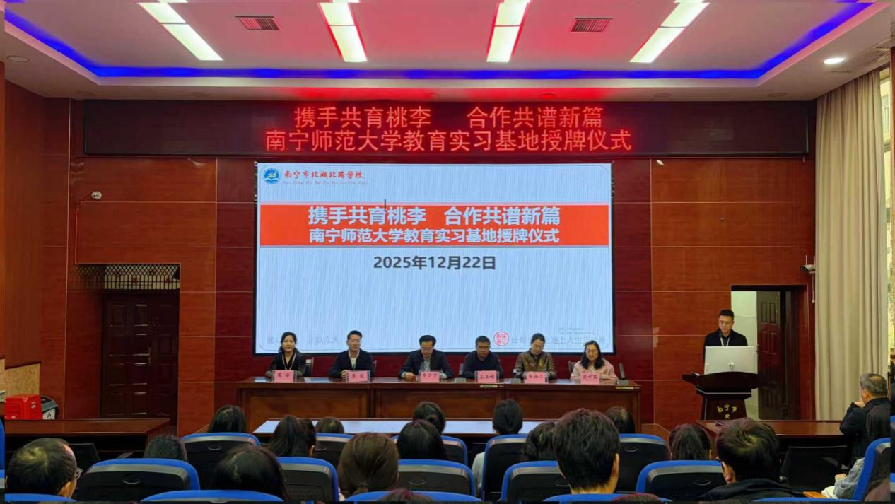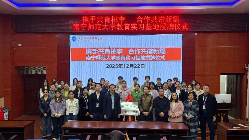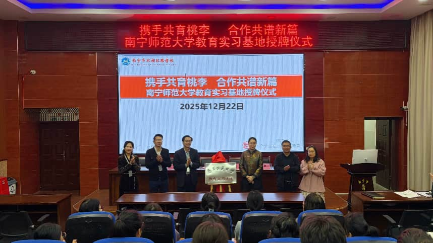 隨后,韋揚江副院長代表我校向北湖北路學校授予“南寧師范大學教育實習基地”牌匾,雙方領導共同揭牌,標志著兩校合作進入實質性階段。