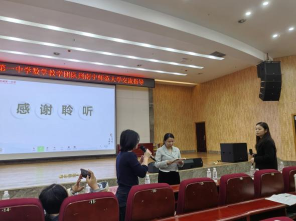 從2025年1月起,數(shù)學(xué)與統(tǒng)計(jì)學(xué)院與廣西尊文智慧教育圖書有限公司開展大數(shù)據(jù)賦能的中學(xué)精準(zhǔn)教學(xué)合作研究,成立了廣西大數(shù)據(jù)精準(zhǔn)教學(xué)研究院。隨后廣西大數(shù)據(jù)精準(zhǔn)教學(xué)研究院在北海市第十一中學(xué)、靈城縣靈城第一中學(xué)、梧州市第五中學(xué)等多所學(xué)校建立了實(shí)驗(yàn)基地學(xué)校。本次活動(dòng)由廣西大數(shù)據(jù)精準(zhǔn)教學(xué)研究院提供專業(yè)引領(lǐng),廣西尊文智慧教育圖書有限公司提供“點(diǎn)知精準(zhǔn)教學(xué)”平臺(tái)、智慧教輔及技術(shù)的支持,欽州市靈山縣靈城第一中學(xué)數(shù)學(xué)教學(xué)團(tuán)隊(duì)打造精品課例,通過精彩課例展示與專題講座,生動(dòng)演繹了大數(shù)據(jù)如何深度融入課堂教學(xué),中學(xué)數(shù)學(xué)課堂教學(xué)如何基于AI及大數(shù)據(jù)技術(shù)支持的學(xué)情數(shù)據(jù)驅(qū)動(dòng)備課、課堂數(shù)學(xué)活動(dòng)組織、練習(xí)與測(cè)評(píng)各環(huán)節(jié)的精準(zhǔn)實(shí)施,為發(fā)展學(xué)生數(shù)學(xué)核心素養(yǎng)、推動(dòng)區(qū)域教育質(zhì)量提升提供了可借鑒的實(shí)踐范式。
